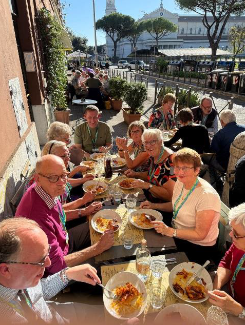 Tussen de vieringen door zwierven we door de stad. We stonden stil bij het Colosseum, liepen over pleinen, ontdekten kleine kerken en smalle steegjes. En ja, we proefden Rome: pizza, pasta, cappuccino en gelato. Het leven smaakte goed en de gesprekken aan tafel waren warm en open.